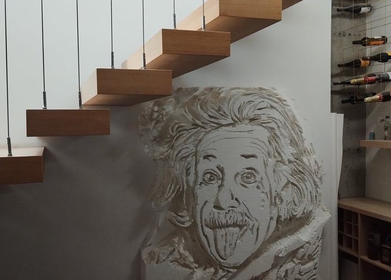Albert Einstein — Hand-carved sculpture. 150x150cm